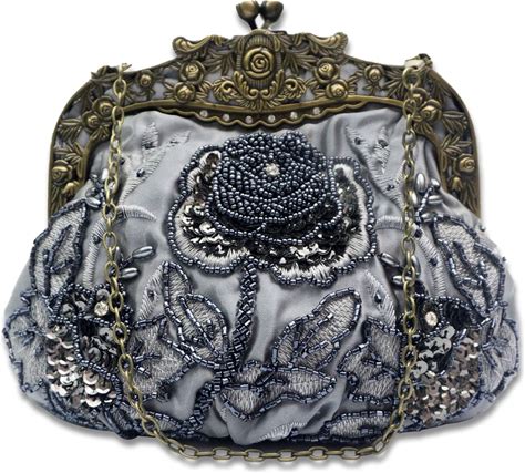 CORIOS Vintage 1920S Beaded Evening Bag Pearl Clutch Bag For Women Sequin Handbag Bridal Wedding Purse Floral Shoulder Bag