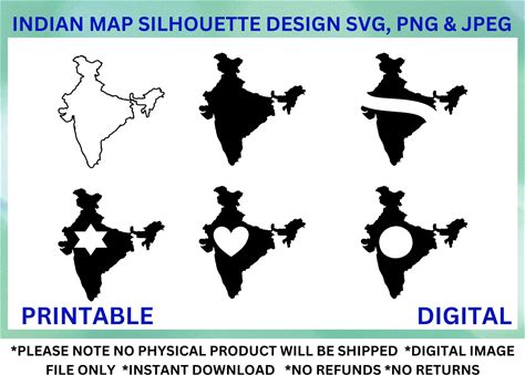 Indian Map Silhouette Design Svg, Png & Jpeg, Graphic Instant Download