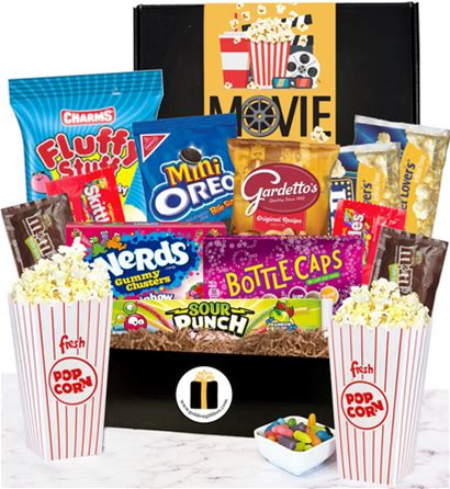 Movie Night Gift Box With Popcorn, Theater Candies, Cookies, And Snacks