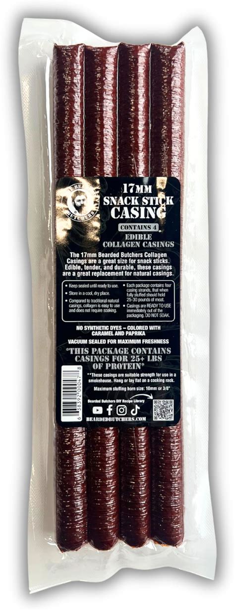 Bearded Butchers Edible 17mm Mahogany Collagen Snack Stick Casings, 4-Pack - Make Your Own DIY Meat Snack Sticks, Great With Beef, Pork, Venison &