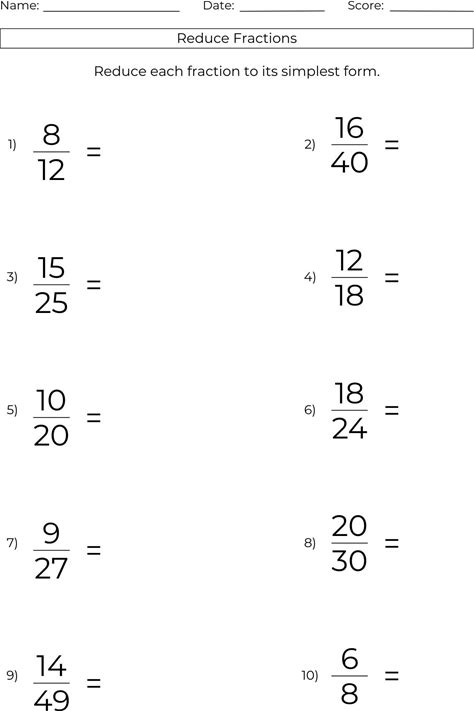 5 Math Worksheets - Simplifying Fractions Grade