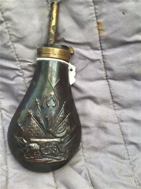 Muzzleloading Brass Black Powder Flask Artillery And Flags Embossed